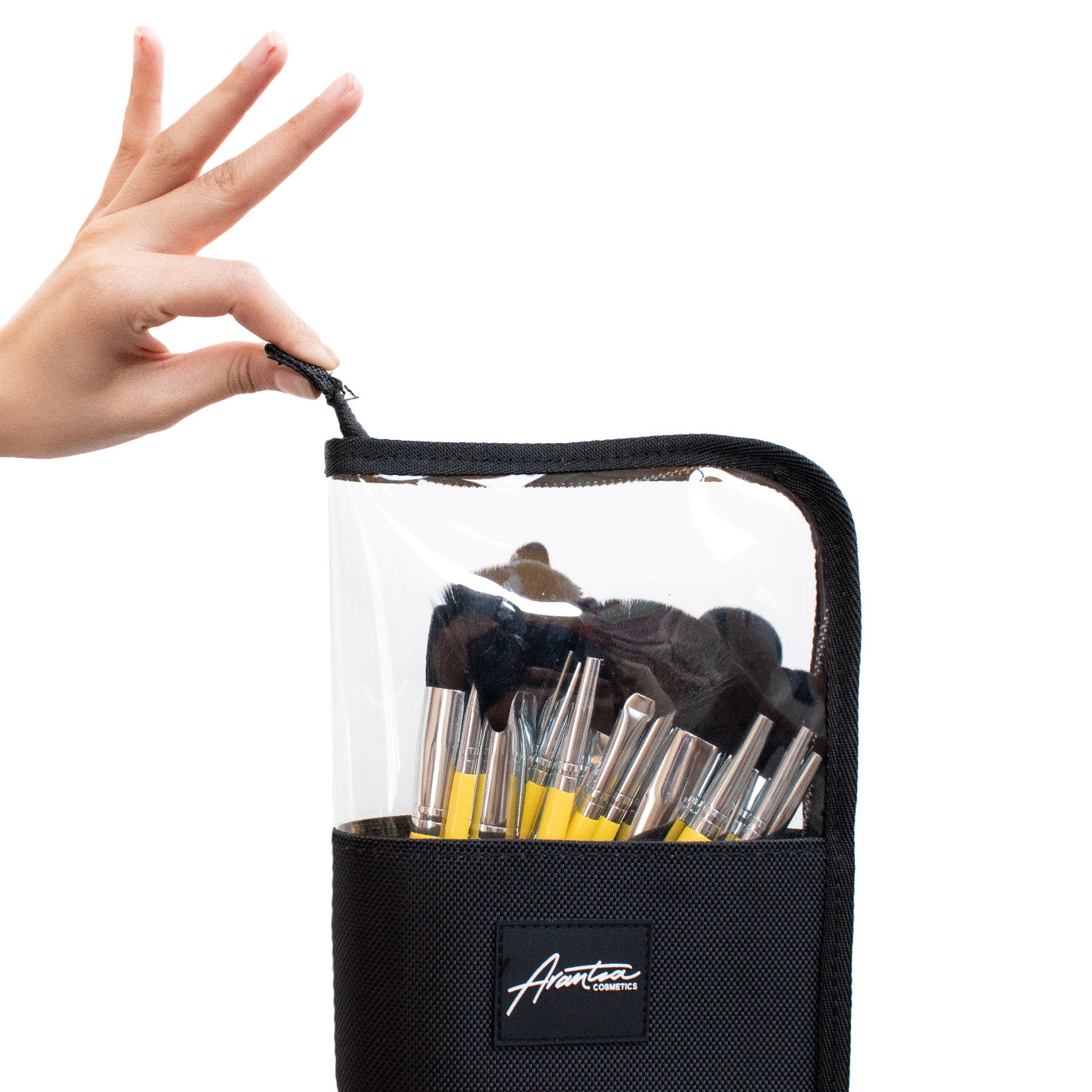 Este set incluye un funcional estuche hecho de materiales resistentes y fáciles de limpiar, puedes usarlo para resguardar tus brochas favoritas y como base para colocarlas en tu vanity o en cualquier superficie al momento de utilizarlas.