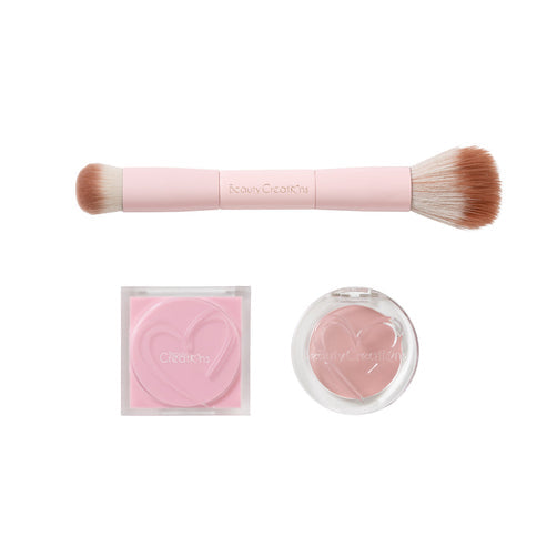 En su interior encontrarás un rubor en crema aterciopelado para un brillo natural y húmedo, un rubor en polvo mate para un acabado rosado duradero, además de una brocha facial de doble cara para una aplicación perfecta y sin esfuerzo.